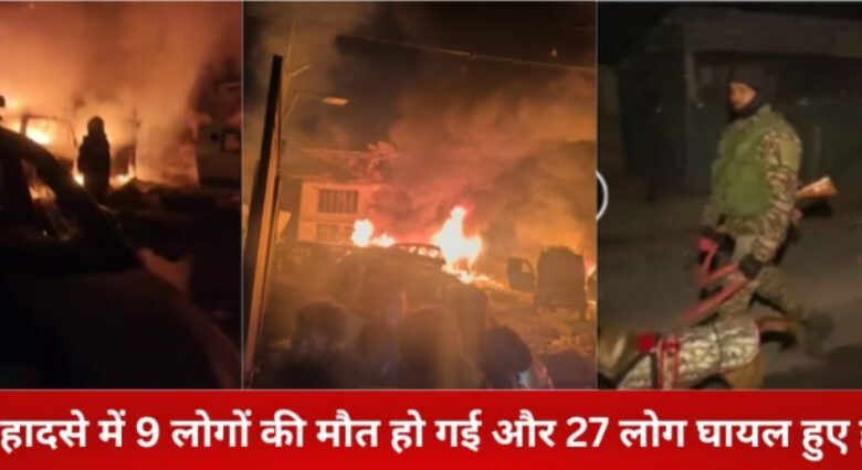 जम्मू–कश्मीर के श्रीनगर में शुक्रवार रात एक पुलिस थाने में जब्त किए गए विस्फोटकों के ढेर में अचानक बड़ा धमाका हो गया। इस हादसे में 9 लोगों की मौत हो गई और 27 लोग घायल हुए हैं। घायलों में कई की हालत गंभीर बताई जा रही है।