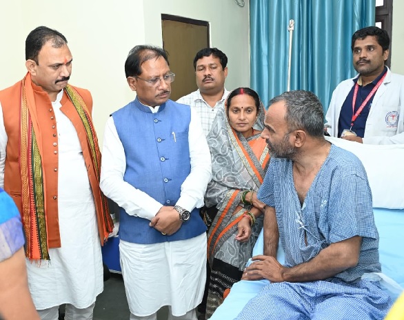 रायपुर। मुख्यमंत्री विष्णुदेव साय ने राजधानी रायपुर के टाटीबंध स्थित एम्स रायपुर में भर्ती सुरजपुर जिले के विशंभर यादव से मुलाकात कर उनका कुशलक्षेम जाना। मुख्यमंत्री श्री साय ने चिकित्सकों से श्री विशंभर यादव के स्वास्थ्य की जानकारी ली और बेहतर इलाज के लिए आवश्यक दिशानिर्देश दिए।