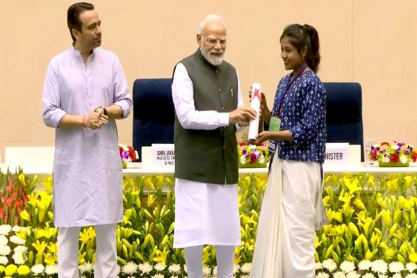 प्रधानमंत्री नरेन्द्र मोदी ने नई दिल्ली में कौशल एवं उद्यमशीलता मंत्रालय, भारत सरकार द्वारा 4अक्टूबर को आयोजित कौशल दीक्षांत समारोह में मध्यप्रदेश की शासकीय आईटीआई, बैतूल की इलेक्ट्रीशियन ट्रेड की प्रशिक्षार्थी कुमारी त्रिशा तावड़े को आल इंडिया सेंट्रल ज़ोन टू ईयर ट्रेड में टॉप करने पर सम्मानित किया है।