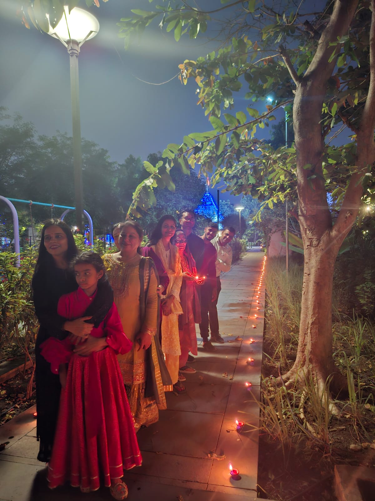 सोसाइटी परिसर दीपों की सुनहरी आभा से जगमगा उठा। हर परिवार ने अपने घर के सामने दीपक सजाकर सामूहिक रूप से प्रेम, सद्भाव और उत्साह का वातावरण निर्मित किया।