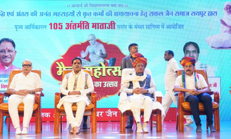 मुख्यमंत्री विष्णु देव साय ने कहा कि मैत्री महोत्सव केवल एक आयोजन नहीं, बल्कि आत्मिक जागृति और शुद्धिकरण का पावन अवसर है। भारत की पुण्यभूमि केवल सभ्यता और संस्कृति की जननी ही नहीं, बल्कि आध्यात्मिकता की जीवंत प्रयोगशाला भी रही है। यहाँ धर्म केवल पूजा तक सीमित नहीं है, बल्कि जीवन जीने की कला है। उन्होंने कहा कि भगवान महावीर स्वामी ने ‘जियो और जीने दो’ का संदेश दिया। हाल ही में मनाए गए क्षमादान पर्व का सार यही है कि ‘उत्तम क्षमा, सबसे क्षमा और सबको क्षमा’—यही बड़प्पन है और यही वसुधैव कुटुम्बकम का वास्तविक संदेश है। जैन धर्म ने इस भावना को सबसे सुंदर और गहन रूप में प्रस्तुत किया है। मुख्यमंत्री ने कहा कि जैन समाज परोपकारी समाज है और इसके सेवा भाव का लाभ छत्तीसगढ़ को निरंतर मिलता रहेगा।